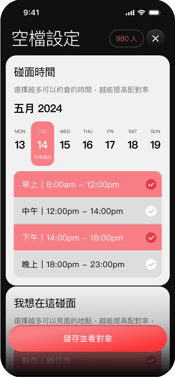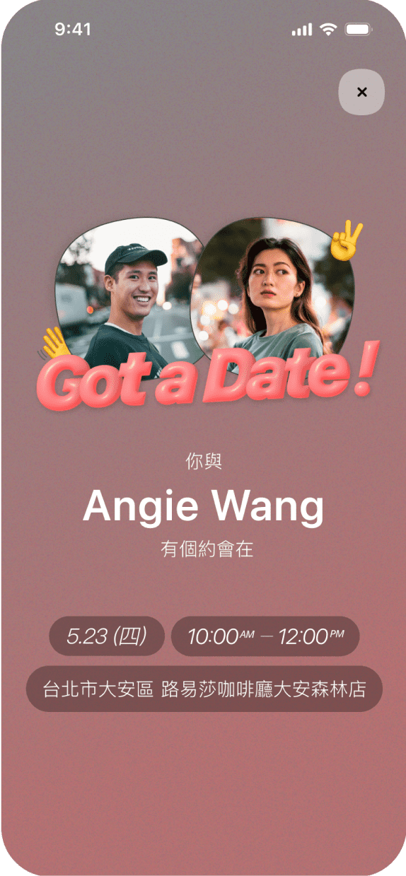 週末找⼈陪?右滑即訂下碰⾯時間地點!