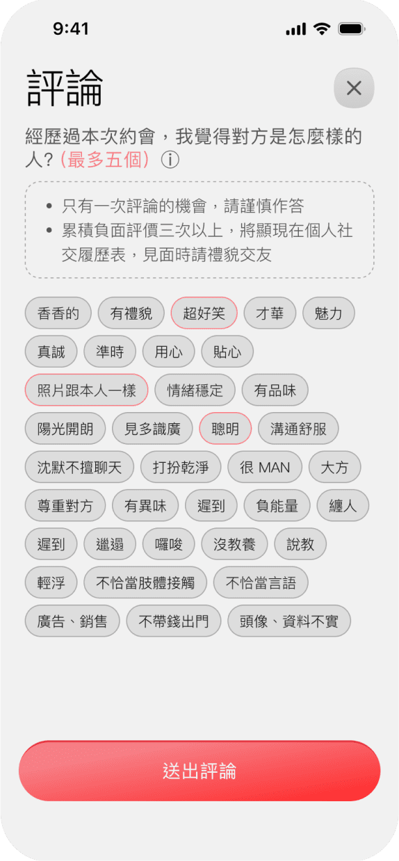 直接看到其他跟對⽅實體⾒過⾯的真實評價,避開討厭⿁ 🤗